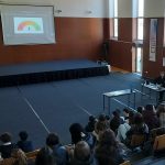 Workshop in the context of a Mission at José Estevão Secondary School, with four classes of 10th, 11th, and 12th graders studying Science and Technology and Languages and Humanities. The workshop was attended by 120 people, students and teachers, interested in learning more about the use of IAG for learning in secondary education. - (H)À Educação: What paths for the use of generative artificial intelligence in education?